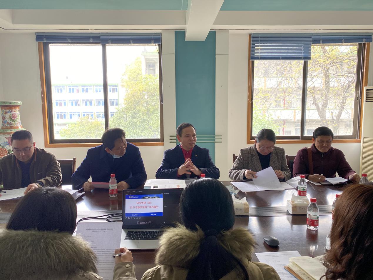 为全面推进2021年春季学期工作,研究生院(部)于3月2日在屏风南校区办公楼305组织召开新学期工作布置会,周国清副校长出席会议,研究生院(部)全体教职工参加。
