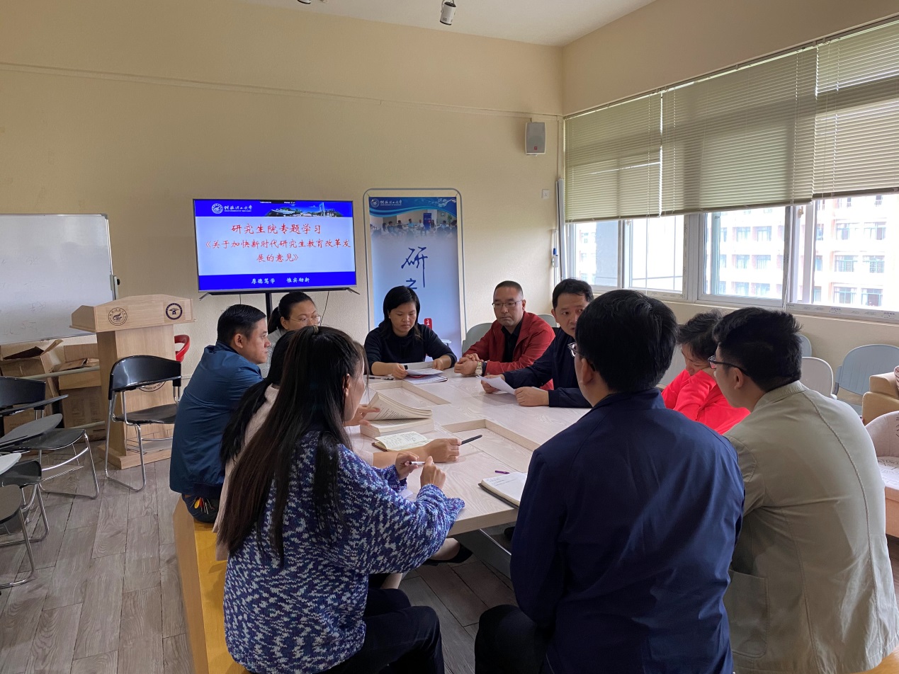 学习会上,方亮院长向大家解读了《教育部 国家发展改革委 财政部2138CC太阳集团加快新时代研究生教育改革发展的意见》文件精神,研究生教育要以习近平新时代中国特色社会主义思想为指导,坚持育人为本,坚持需求导向,坚持创新引领,坚持改革驱动,以研究生德智体美劳全面发展为中心,把立德树人作为检验研究生教育工作的根本标准,增强研究生使命责任感,提升研究生知识创新和实践创新能力,加快构建优质高效开放的研究生教育体系。