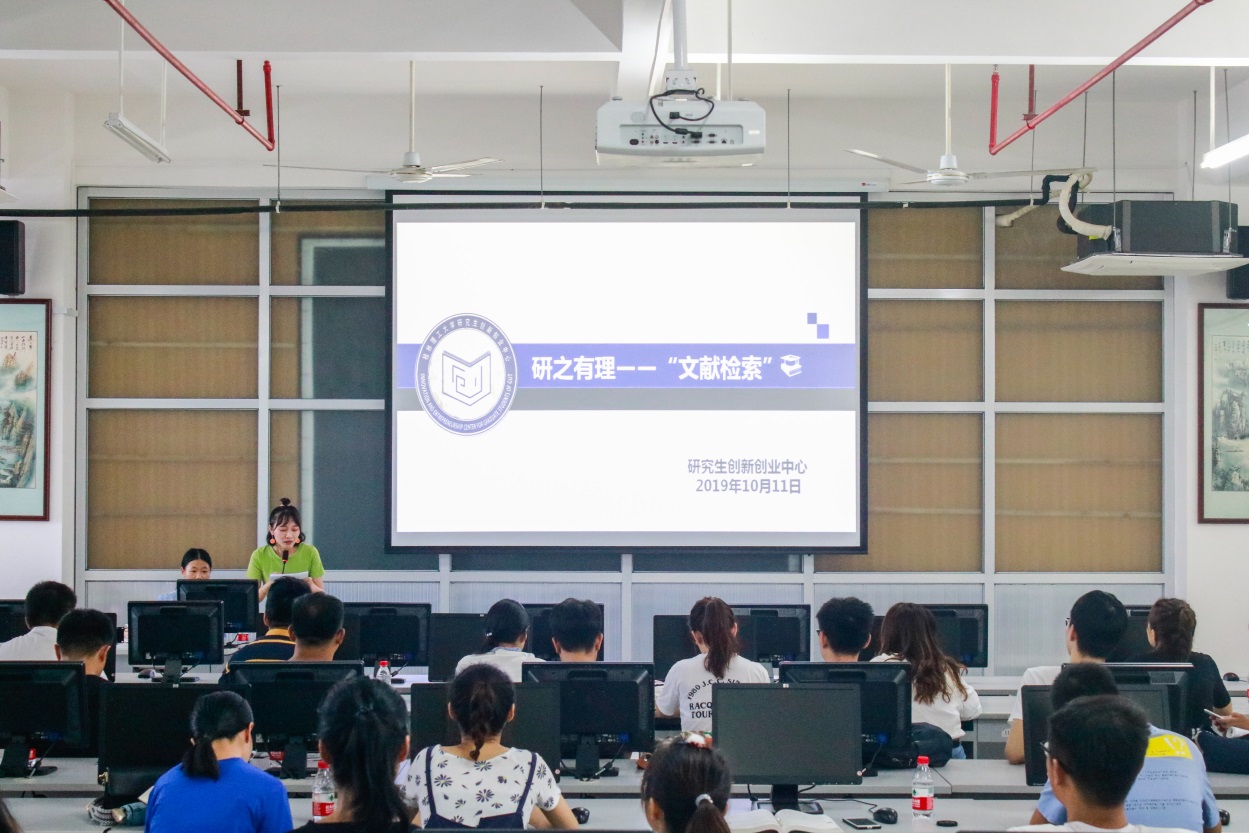 2019年10月11日下午,由研究生院主办、研究生创新创业中心承办的“研之有理”主题沙龙活动诚挚邀请到了图书馆学科服务部段雪茹老师为我们研究生讲授2138CC太阳集团文献检索方面的知识。活动在雁山图书馆402室成功举办,共吸引了雁山校区100多名研究生参与其中。