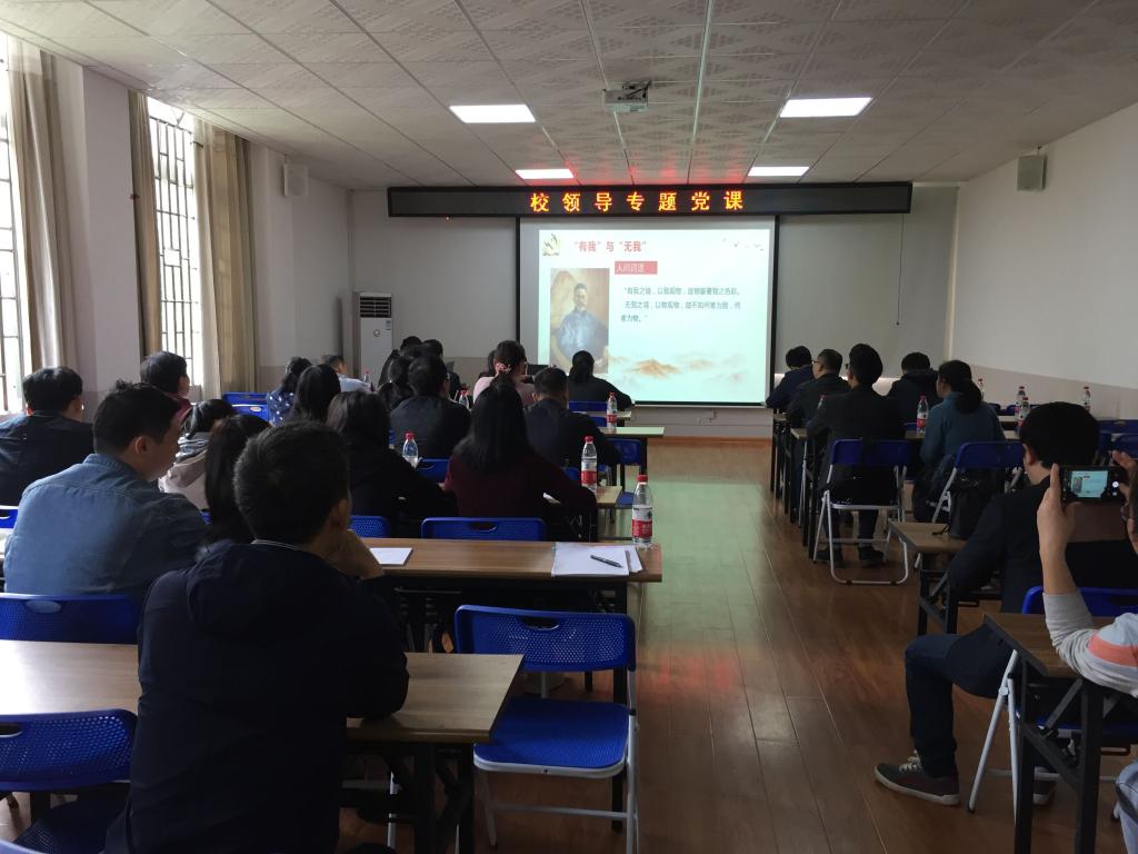 此次专题党课学习报告会主题为习近平总书记出访意大利时提出的“我将无我才能不负人民”。王副校长首先结合中国共产党诞生、发展新时代、苏维埃政府成立等方面进行回顾“无我”的发展历程,并从无限的感恩、无限的信仰、无畏的担当和无私的奉献四个方面对“无我”进行解读和阐释。随后在牢记“无我”部分,描述了“时代是出卷人,我们是答卷人,人们是阅卷人”的理念,提出要坚守信仰,感恩社会,善待自己的单位。在践行“无我”部分,应做到“信念上一生一世的坚守,能力上一点一滴的积累,工作上一心一意地践行”。最后,王副校长要求大家在日常工作中做到勤勉、认真、拼搏,持无私奉献精神践行“无我”,不忘初心,牢记使命。