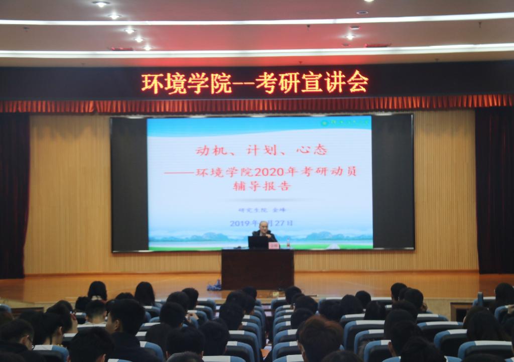 3月27日晚19:00,环境学院特邀研究生院金峰副院长、宾秀玲老师在雁山校区图书馆报告厅开展环境学院2020年考研动员大会。