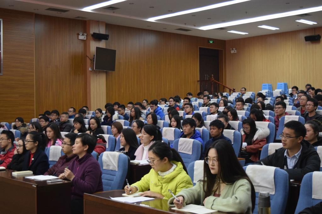 12月4日、5日,学校分别在屏风、雁山两校区举行“研究生学习宣传贯彻党的十九大精神”专题报告会,在广大研究生中掀起深入学习宣传贯彻党的十九大精神高潮。各学院研究生代表,研究生工作部全体老师等近500人参加了报告。