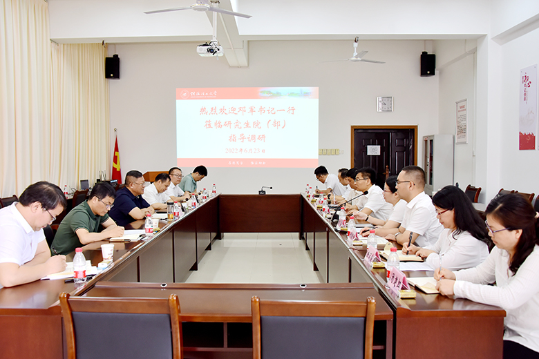 6月23日上午,学校党委书记邓军到研究生院(部)开展调研,了解学校在学位与研究生教育方面的情况。学校副校长周国清,党办校办、人事处、科技处、发展规划与教学质量监控中心主要负责人陪同调研。