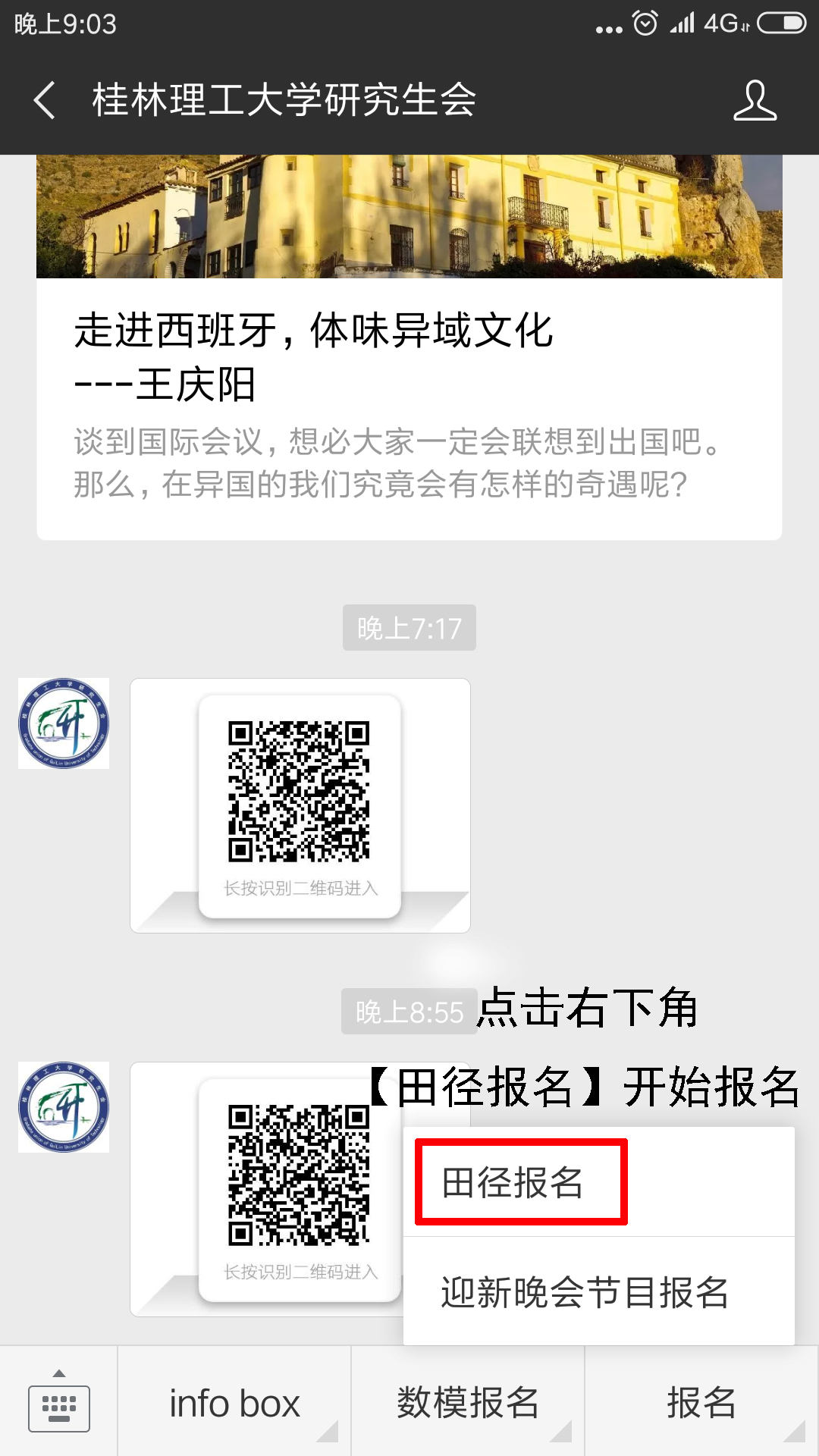 2.个人报名,关注微信公众号2138CC太阳集团研究生会,进入后点击右下角【田径报名】开始报名(已通过院报名不需要重复报名),如下图所示