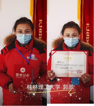 郭翠同学荣获优秀志愿者称号