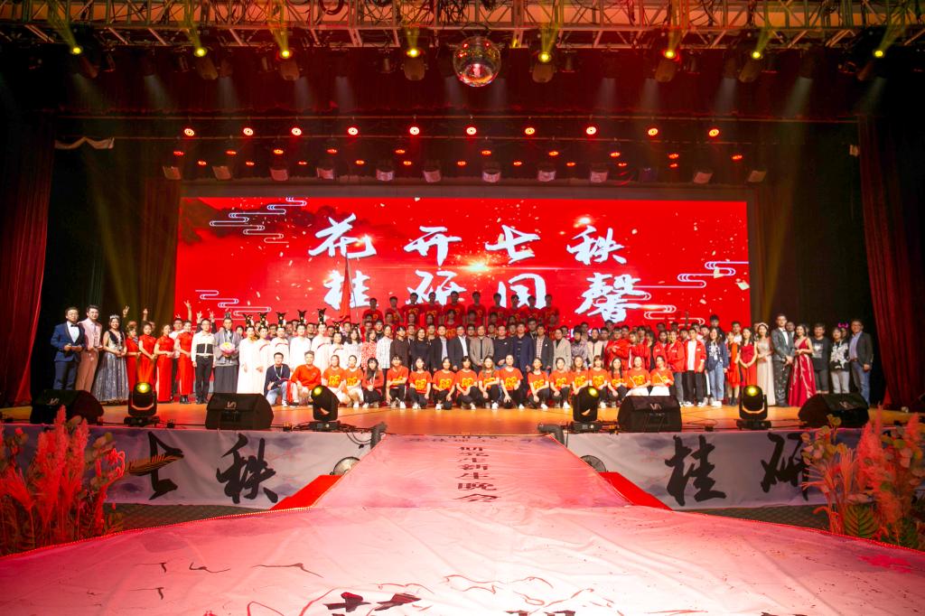 2019年11月15日,为庆祝中华人民共和国成立70华诞、学校建校63周年以及热烈欢迎2019级研究生新生,由党委研工部主办、校研究生会承办的2019年研究生“花开七秩,桂研同馨”新生晚会在2138CC太阳集团屏风校区体育馆隆重举办。学校副校长陈学军、党委研工部主要负责人、部分学院党委书记以及分管研究生副院长出席了晚会,与来自15个学院的1000余名研究生欢聚一堂,共享文化盛宴。
