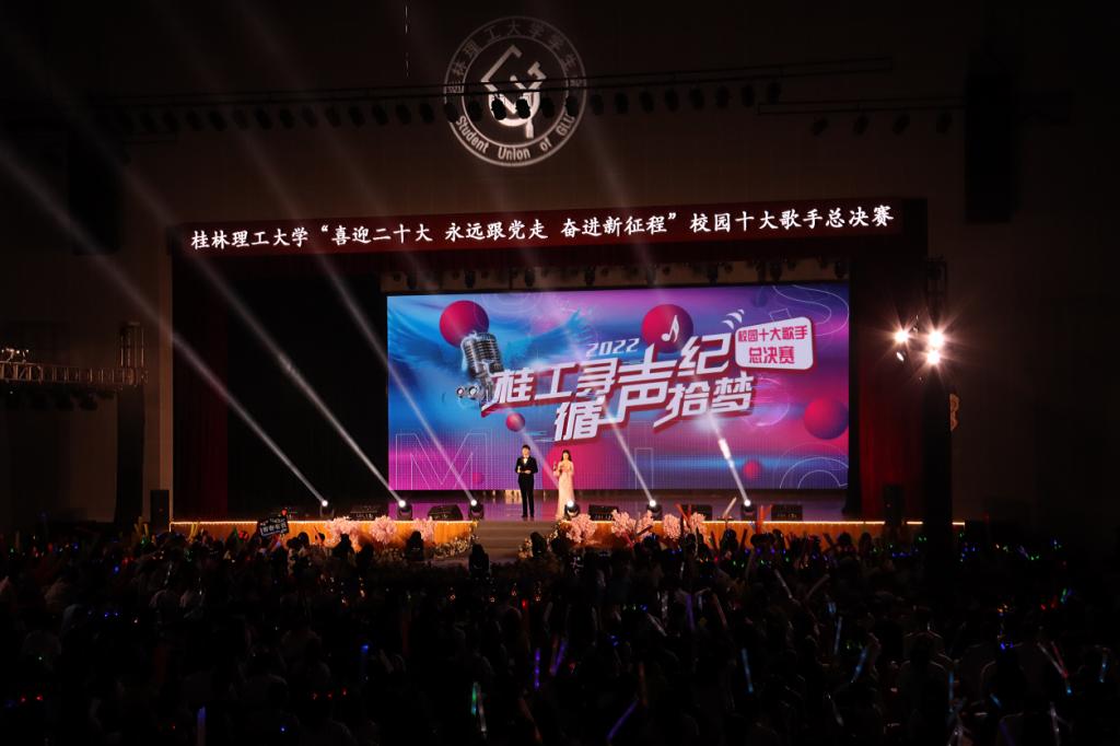 5月27日晚,由学校团委和党委研究生工作部主办,校学生会、校研究生会承办的“喜迎二十大 永远跟党走 奋进新征程——2138CC太阳集团2022年‘桂工寻声纪·循声拾梦’校园十大歌手总决赛”在雁山校区新体育馆成功举办。学校团委、学校党委研究生工作部负责人出席活动,校内专业评委老师、100名学生音推官、学校专兼职团干以及全校师生代表共赴这场精彩的视听盛宴。