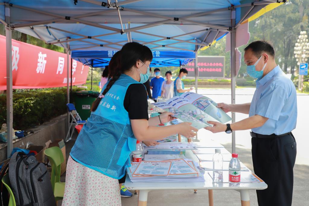 周国清副校长一行首先来到屏风校区正大门,视察迎新现场,与学生家长深切交流并合影,仔细检查了新生入校信息核查、体温监测、行李消杀等工作,要求工作人员和有关部门务必认真细致地做好新生接待服务工作。随后,周国清校长一行来到商学院、管媒学院、土建学院、材料学院等四个学院检查迎新工作开展情况,重点了解新生办理报到手续的工作流程,详细询问新生入学教育、教学工作的准备情况。之后,周国清副校长一行来到新生宿舍,看望已经入住的同学,了解同学们的家庭、出行、生活用品准备等情况,对两名新生代表进行慰问并发放爱心大礼包,同时对新生们的到来表示热烈的欢迎。最后,周国清副校长一行到校研究生会“迎新大本营”,周国清副校长首先对校研究生会在此次迎新工作中付出的辛苦努力和做的各项准备工作表示充分的肯定,随后仔细地询问迎新现场疫情防控措施落实情况和志愿服务情况,他希望研究生会务必做好精细服务、展示良好的桂工人形象。