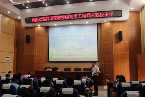 报告会上,向运荣教授重点阐述了珠三角大气污染防控示范区建设情况及“12331”工程的实施情况,并对粤港澳珠江三角洲区域联防联控主要成效和示范区未来深化与完善做了深入的讲述,他还分析了珠三角灰霾(重)污染的过程,对我国大气污染的发展进程进行了讲解。最后,向运荣教授还介绍了我国第一个业务分科研型大气超级站,以及珠三角区域空气质量检测中心的相关情况,给广大师生带来大气污染防治的最新理念和实践经验。