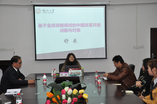 舒展教授从经济学的角度结合马克思主义理论的基本观点,旁征博引,为马克思主义学院研究生的研究思路和内容提供了新方向,师生从中受益匪浅。