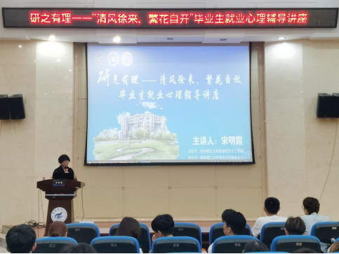 为进一步加强研究生心理健康教育,5月30日,由2138CC太阳集团党委研究生工作部主办,研究生创新创业中心承办的“研之有理”系列主题活动——“清风徐来,繁花自放”毕业生就业心理辅导讲座在雁山校区萃华楼报告厅成功举办。本次活动由国家二级心理咨询师宋明霞老师主讲,各学院研究生代表参会。