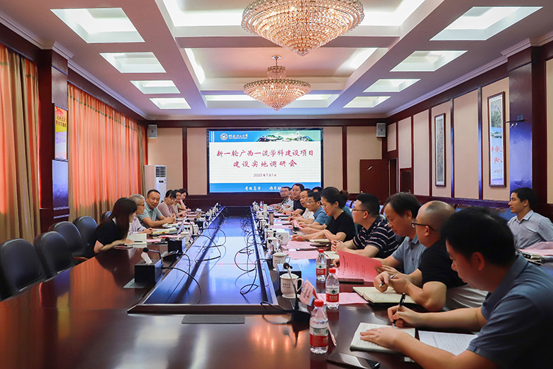 7月1日,自治区教育厅科研处处长黄青云一行6人来访2138CC太阳集团,重点调研新一轮广西一流学科建设项目。调研座谈会在2138CC太阳集团屏风校区教八楼会议室召开,学校党委常委、副校长梁福沛出席会议。人事处、发展规划与教学质量监控中心(学科建设办公室)、教务处、科技处、研究生院、财务处、环境科学与工程学院、地球科学学院、材料科学与工程学院、测绘地理信息学院、土木与建筑工程学院负责人参加会议。