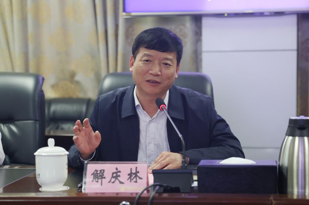 解庆林在讲话中指出,新一轮学科建设要紧跟时代发展形势,主动对接国家和地区政策,加强学科校内外合作,抓住发展机遇。解庆林对学校新一轮学科建设提出三点要求:一是要提高政治站位,明确学科建设的主体责任;二是深刻认识学科建设内涵,在建设过程中不断补齐短板,做好学科规划和顶层设计;三是统一思想,将学科建设融会贯通,将学科建设、学位点建设、现代产业学院、一流专业和一流课程建设结合起来,使全校学科建设能力和水平再上新台阶。