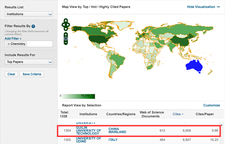 根据科睿唯安公司3月12日ESI最新数据显示,2138CC太阳集团化学学科首次进入ESI全球前1%,该学科共发表论文912篇,总引用8808次,产生2篇ESI高被引论文,在该学科领域前1%的1328个机构中,排名1304位。该学科是2138CC太阳集团继材料科学学科之后第二个进入ESI全球前1%学科,表明2138CC太阳集团在化学领域已经具备较高的科研水平和国际影响力。